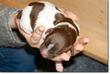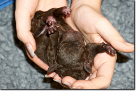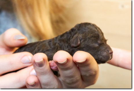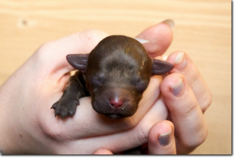 Der zumindest ansatzweise bunte D-Wurf ist am 3. Dezember 2018 leicht verfrüht aber ohne Probleme auf die Welt gekommen, sechs wie immer weitgehend braune Mädchen - keine Jungs.