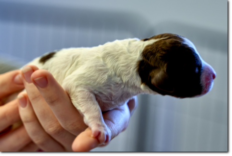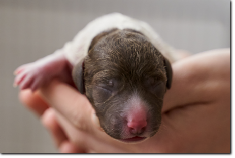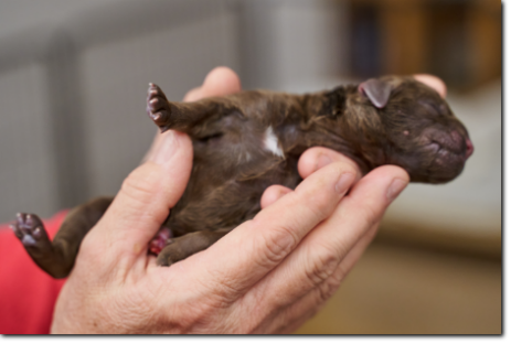 ... und es sind tatsächlich ein paar bunte dabei. Amira hat in der Nacht vom 16. auf den 17.1. ohne Probleme acht gesunde Welpen geworfen, fünf Rüden und drei Hündinnen.