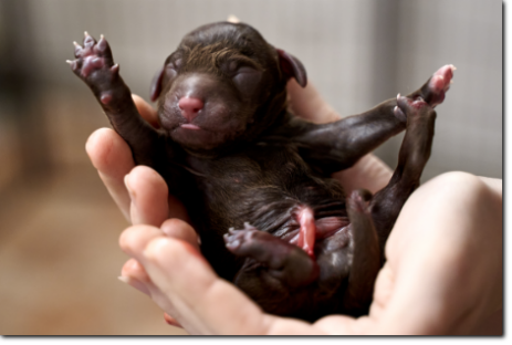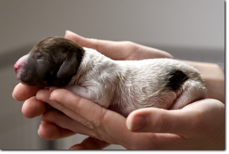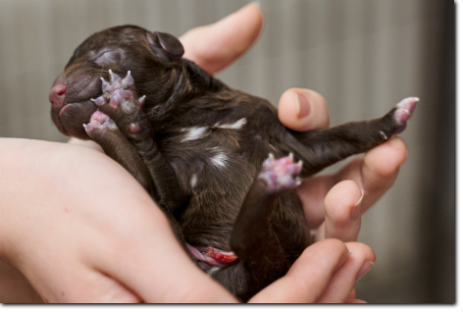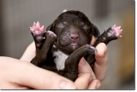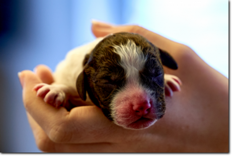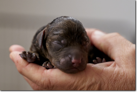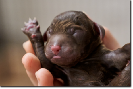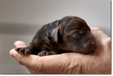 Die Welpen wachsen und nehmen kräftig zu, die schwersten wiegen schon fast 900 Gramm. Bis zur nächsten Woche werden sie schon richtig laufen können, und die Augen werden sich auch geöffnet haben. Kleine Schlitze sieht man bei dem einen oder anderen jetzt schon.