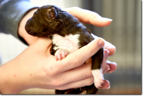Heute, am Donnerstag, war der Tierarzt da und hat die Welpen geimpft und gechipt, und morgen kommt die Zuchtwartin der Lagotto Romagnolo Züchtergemeinschaft (LRZ) zur Wurfabnahme. Am Wochenende werden die ersten Welpen dann abgeholt, der Rest zieht im Laufe der nächsten Woche bei den neuen Familien ein.